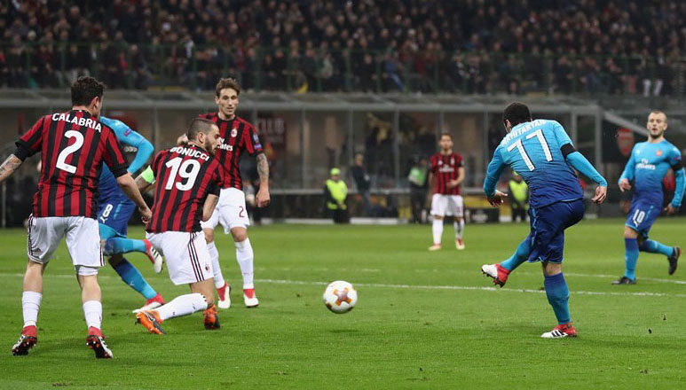 Լոնդոնի «Արսենալը» Եվրոպա լիգայի 1/8 եզրափակչի առաջին խաղում հյուրընկալվելիս 2:0 հաշվով հաղթեց «Միլանին»: