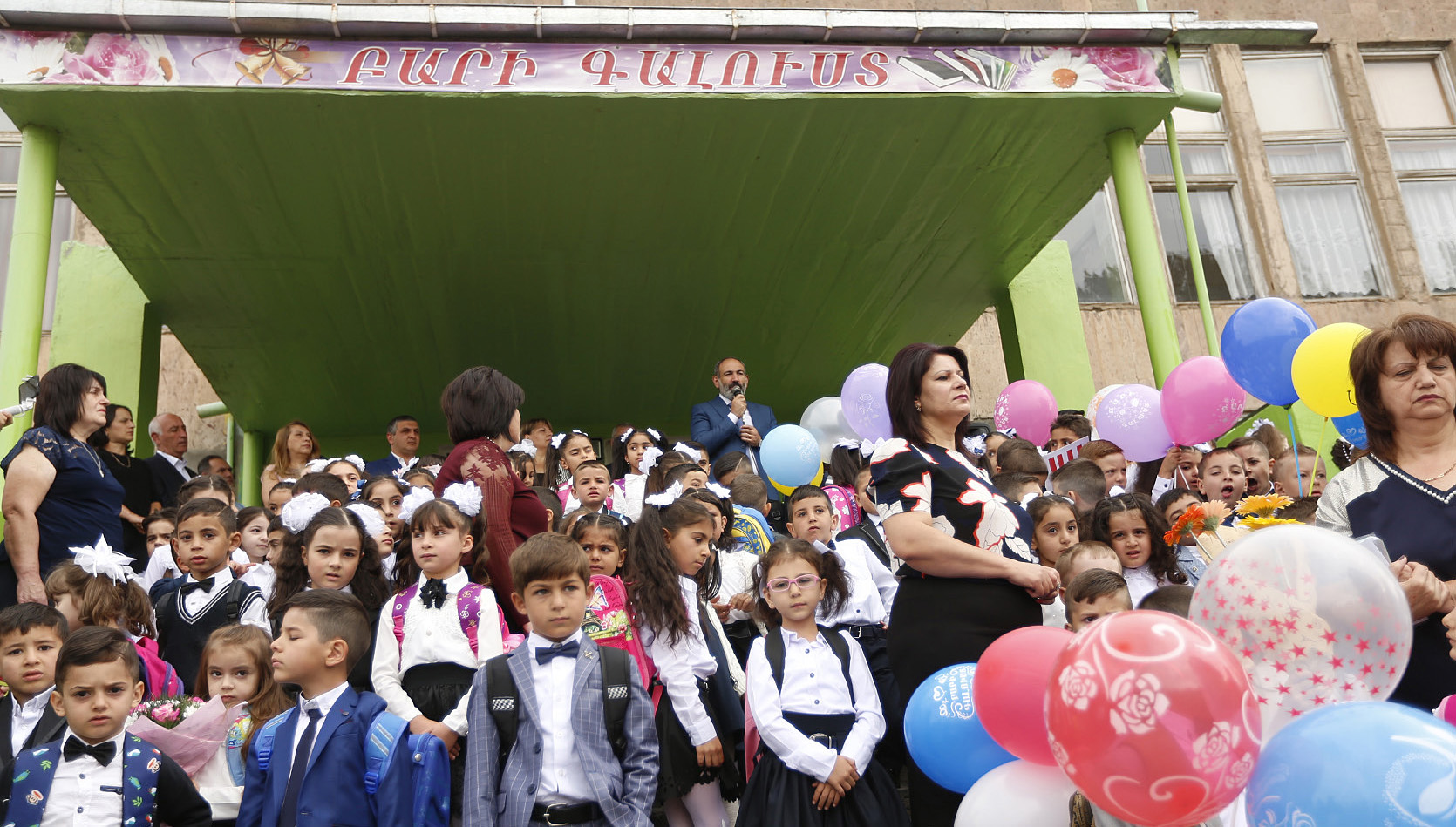 Ողջույնի խոսքում Նիկոլ Փաշինյանը, մասնավորապես, նշել է. «Այսօր նոր Հայաստանի առաջին սեպտեմբերի 1-ն է, այս փոքրիկները նոր Հայաստանի առաջին դասարանցիներն են, ու այսօր այս դպրոց է այցելում 111 առաջին դասարանցի: Ի՞նչն է տարբերությունը, և ի՞նչը պետք է տարբերվի այս նոր իրավիճակում: Կարծում եմ՝ ամենակարևոր արձանագրումը հետևյալն է, որ նոր Հայաստանում կարևորը պետք է լինի ոչ թե գնահատականը, այլ գիտելիքը, այսինքն՝ ամեն աշակերտ, ամեն ծնող պետք է գնա ոչ թե գնահատականի հետևից, այլ գիտելիքի: Նոր Հայաստանում կարևոր է լինելու ոչ թե այն, ինչ անգիր ենք արել, այլ հմտությունների, ընդունակությունների զարգացումը: Նոր Հայաստանում ուսուցիչը, դպրոցն իրենց առջև պետք է ոչ թե ուղղակի խնդիր դնեն, որ երեխային ինչ-որ տվյալներ փոխանցեն, այլ պետք է երեխային պատրաստեն թռիչքի` բառի բուն իմաստով, որովհետև մենք բոլորս մեր երկիրը, մեր հայրենիքը, մեր ժողովրդին պետք է պատրաստենք թռիչքի, որովետև եկել են ժամանակներ, որ, այո, մենք պետք է կարողանանք թռչել: Մենք պետք է կարողանանք հասնել շատ բարձր նպատակների և արդյունքների»: