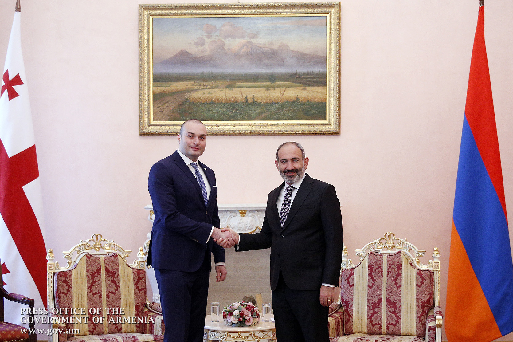 Վարչապետ Նիկոլ Փաշինյանն այսօր ընդունել է պաշտոնական այցով Հայաստան ժամանած Վրաստանի վարչապետ Մամուկա Բախտաձեի գլխավորած պատվիրակությանը: Հայաստանի Հանրապետության վարչապետի նստավայրում Վրաստանի վարչապետի դիմավորման պաշտոնական արարողությունից հետո տեղի է ունեցել Նիկոլ Փաշինյանի և Մամուկա Բախտաձեի առանձնազրույցը, որի ժամանակ քննարկվել են երկկողմ բարեկամական հարաբերությունների ընթացքը և հետագա զարգացման հեռանկարները: