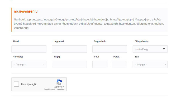 Ուշադրություն․ տարբեր հասցեներում անծանոթ մարդկանց գրանցումներ հայտնաբերելուց հետո ռեգիստրը չի գործում
