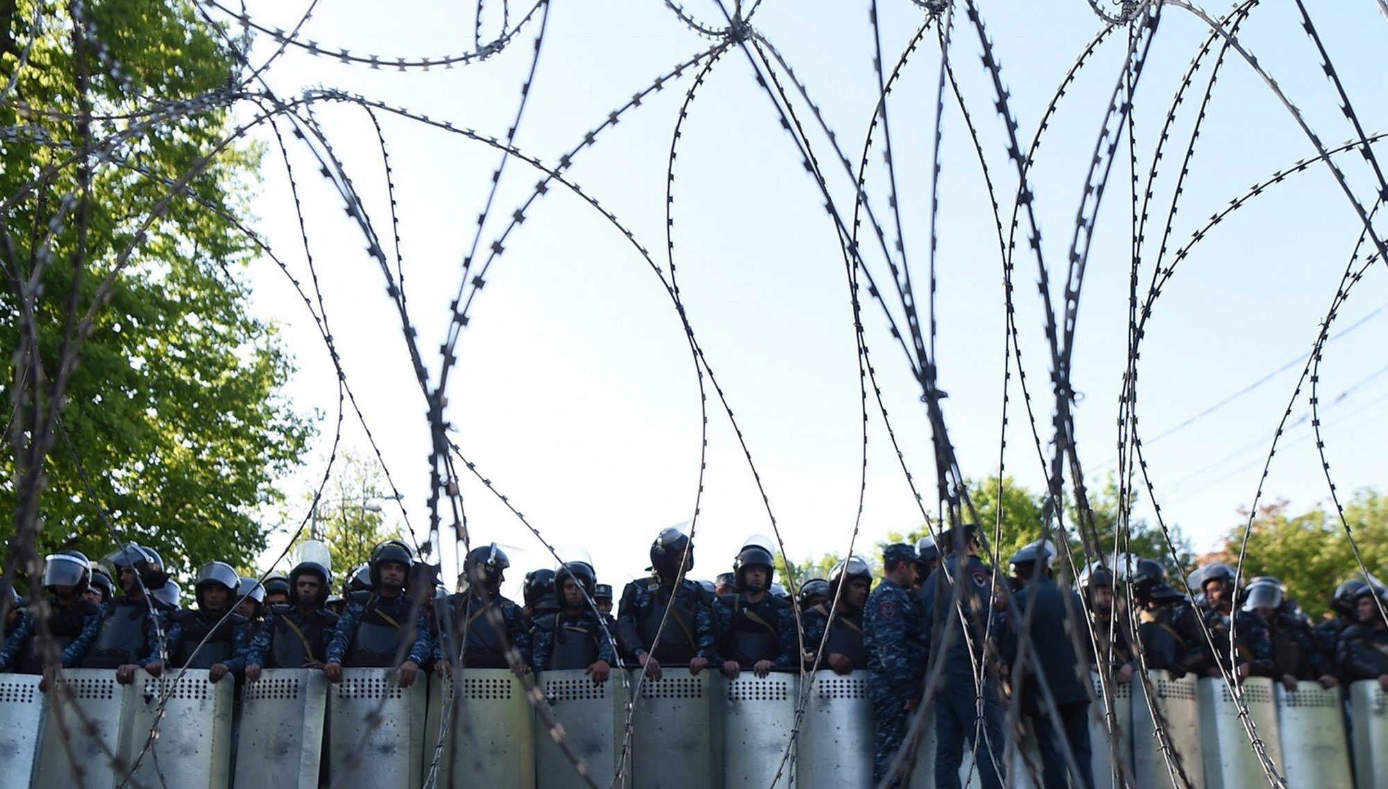 Ոստիկանությունը հիմնական ուժերը՝ զինված մահակներով, փշալարերով, ծանր տեխնիկայով, կենտրոնացրել է Ազգային ժողովի մոտ, որտեղ ուղիղ կեսօրին նախատեսված է հատուկ նիստ՝ Սերժ Սարգսյանի վարչապետությունը քննարկելու և հավանություն տալու համար: