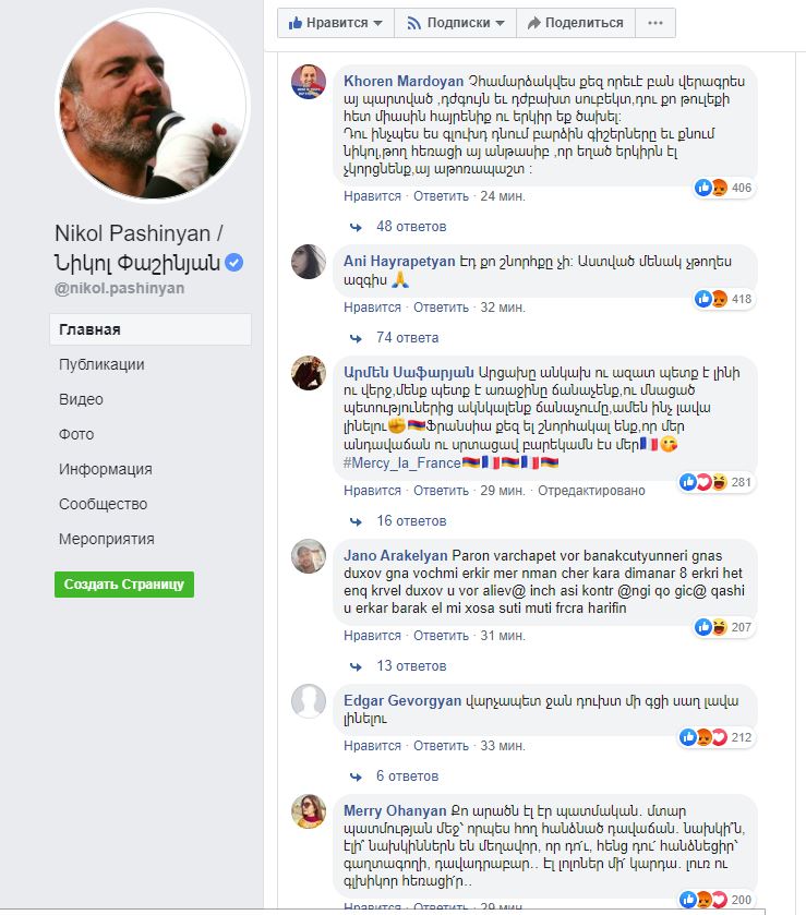 Մեկ այլ քաղաքացի էլ գրել է. «Քո արածն էլ էր պատմական․ մտար պատմության մեջ՝ որպես հող հանձնած դավաճան․ նախկի՞ն, էլի՞ նախկիններն են մեղավոր, որ դո՛ւ, հենց դու՛ հանձնեցիր՝ գաղտագողի, դավադրաբար․․ Էլ լոլոներ մի՛ կարդա․ լուռ ու գլխիկոր հեռացի՛ր․․»։
