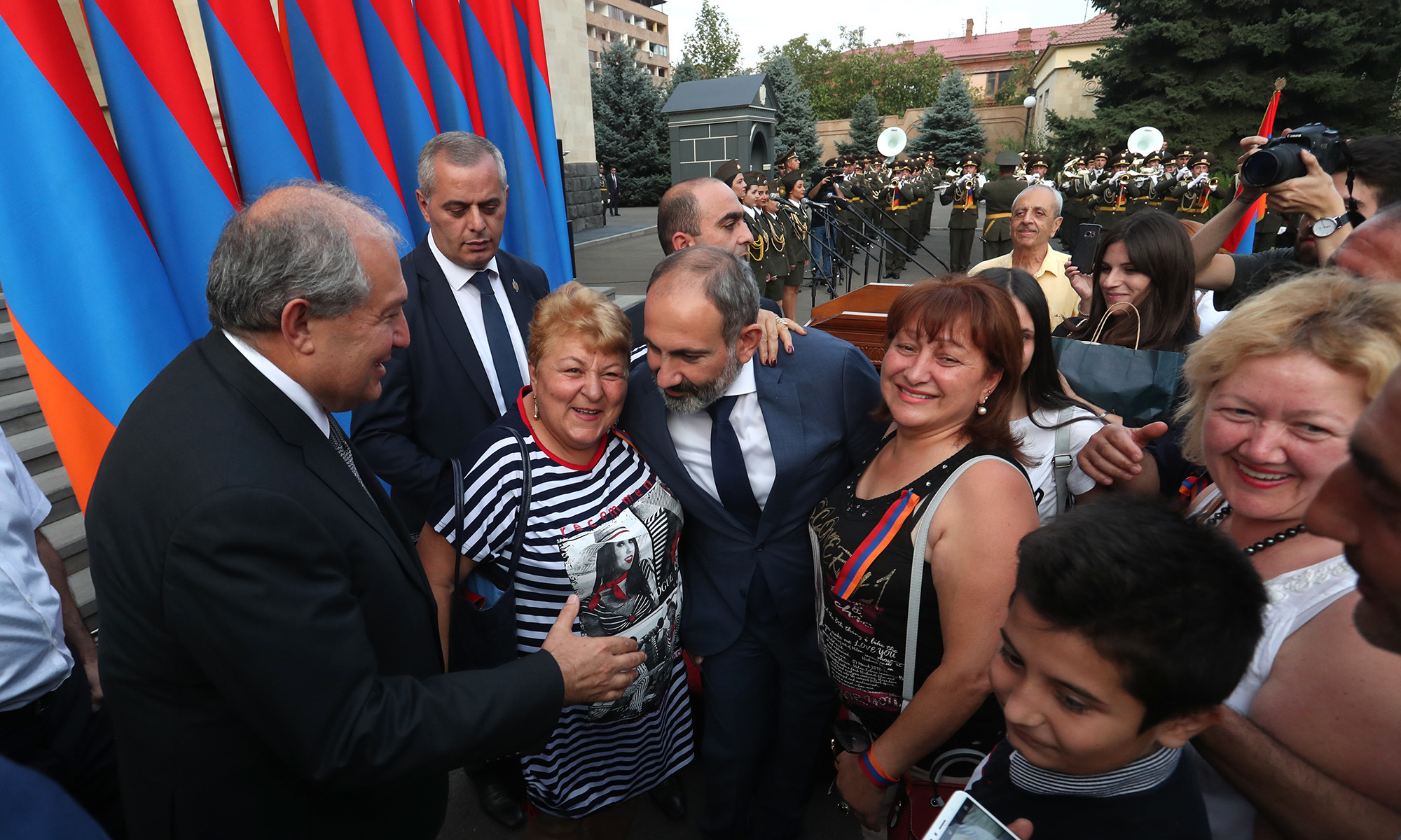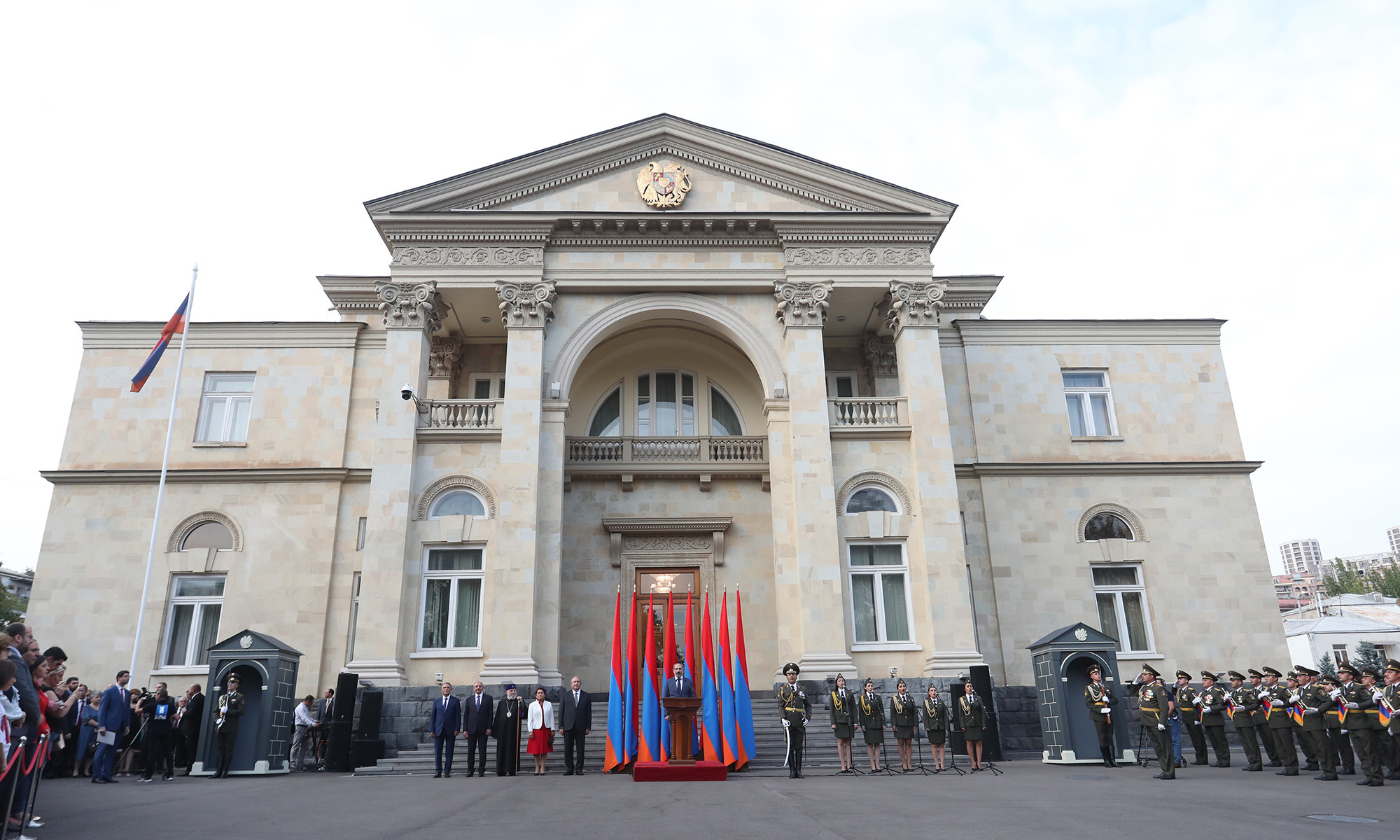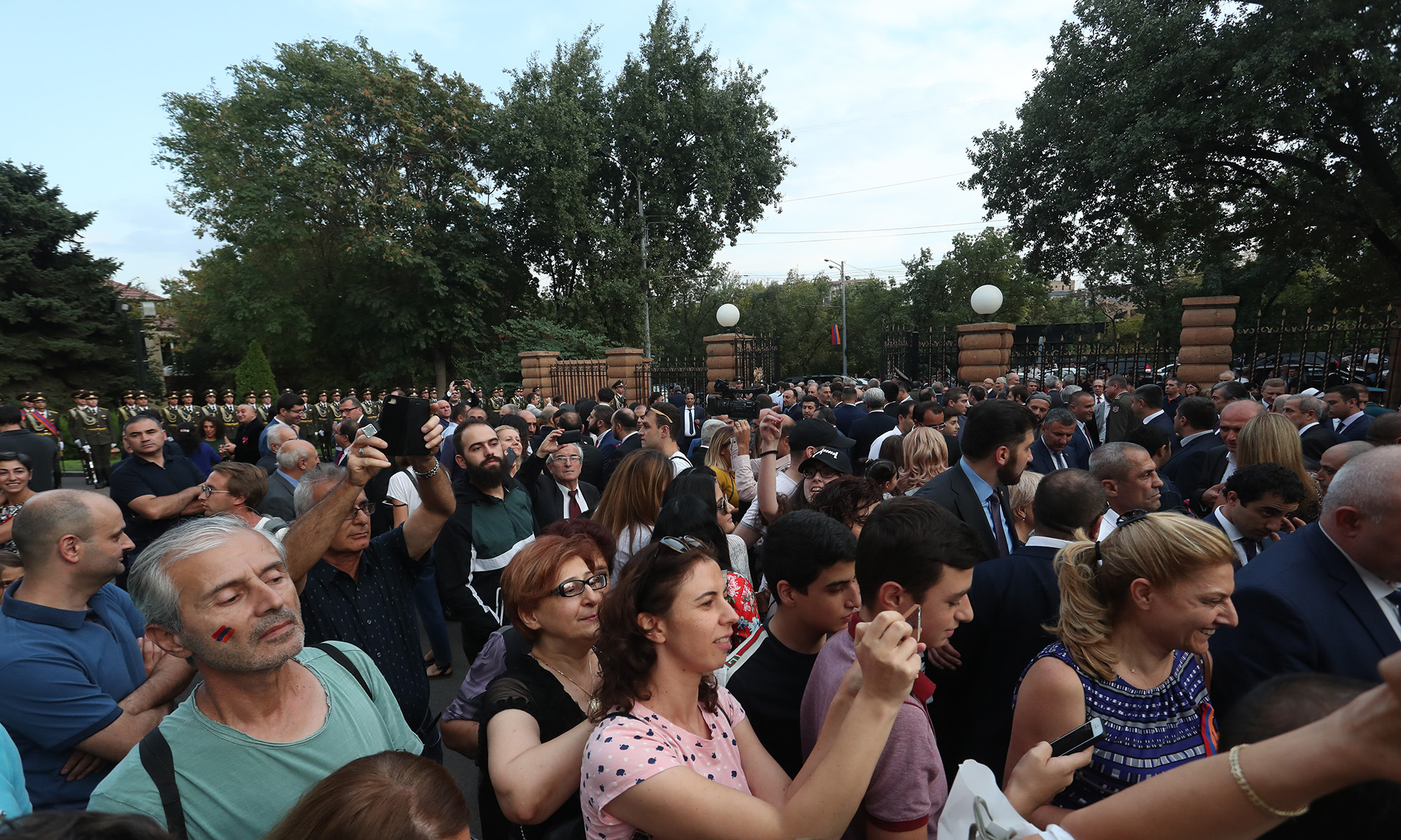 Սիրելի ներկաներ, այսօրվա խոսքս ուզում եմ ավարտել մի խորհրդանշական իրադարձության ազդարարմամբ: Այսօր՝ ՀՀ անկախության 27-րդ տարեդարձի առիթով՝ Բաղրամյան 26-ի դռները կբացվեն, ի նշան այն բանի, որ Հայաստանի իշխանությունը այլևս երբեք մեկուսացած ու կտրված չի լինի ժողովրդից: Հայաստանի քաղաքացիները այսուհետև ազատորեն կարող են մուտք գործել վարչապետի, հետագայում՝ նախագահի նստավայրի տարածք և այն օգտագործել, որպես զբոսավայր, որպես ժամանցի վայր: Մենք հույս ունենք, որ այս դռները այլևս երբեք չեն փակվի՝ խորհրդանշելով, որ Հայաստանի Հանրապետությունում իշխանությունն այլևս անշրջելիորեն պատկանում է ժողովրդին:և ուրեմն, Կեցցե անկախությունը, Կեցցե Հայաստանի Հանրապետությունը, Կեցցեն մեր երեխաները, որ ապրում են և ապրելու են Ազատ և Երջանիկ Հայաստանում: