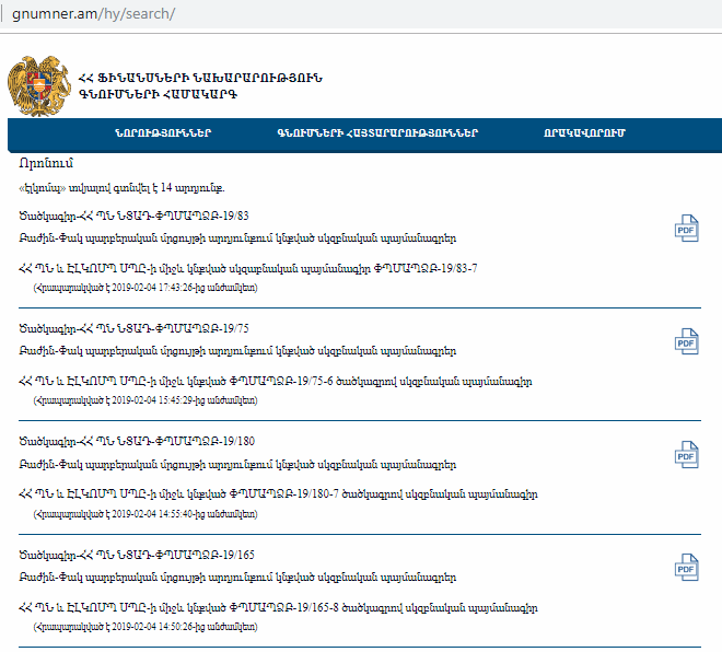 Այս որոշումից ընդամենը երկու ամիս անց՝ 2019 թվականի փետրվարի 4-ին 50 տոկոսով Արշակ Կարապետյանի կնոջը պատկանող ընկերությունը ՀՀ ՊՆ հետ կնքում է մատակարարման չորս պայմանագիր (պայմանագիր 1, պայմանագիր 2, պայմանագիր 3․ պայմանագիր 4)։